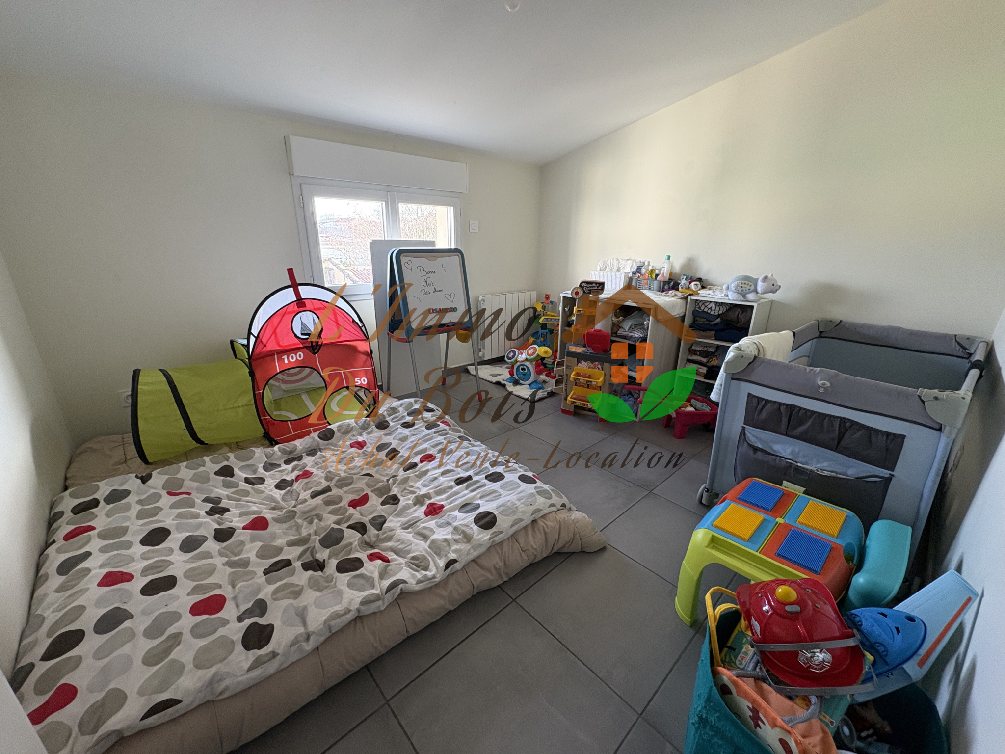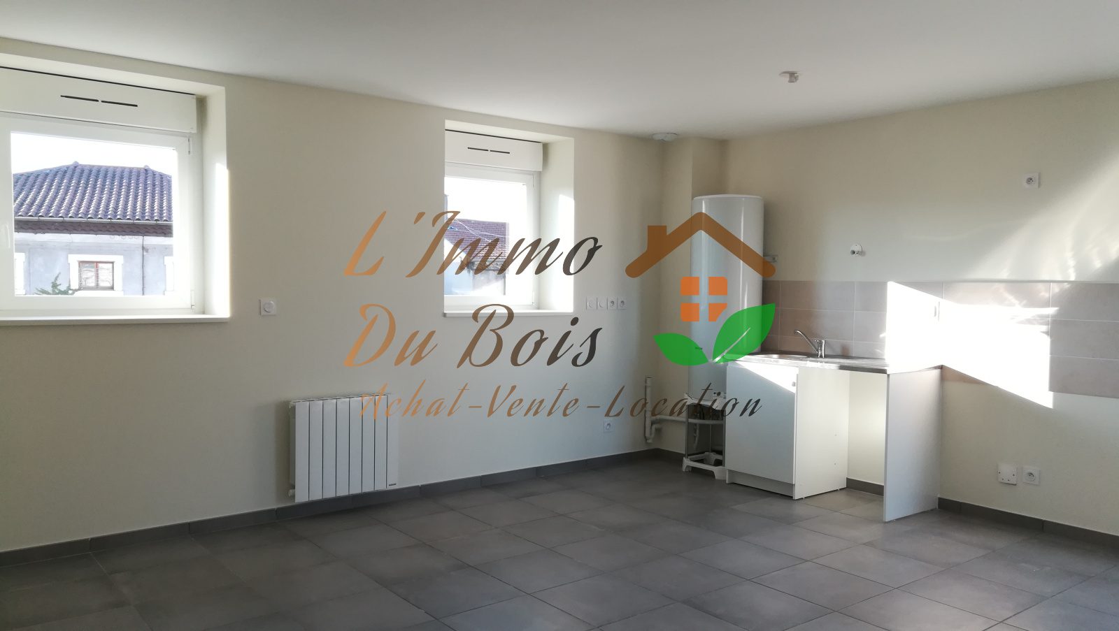 Type 3 de 54 m² composé d'une grande pièce de vie avec coin cuisine (non aménagé), deux chambres, salle d'eau avec WC.